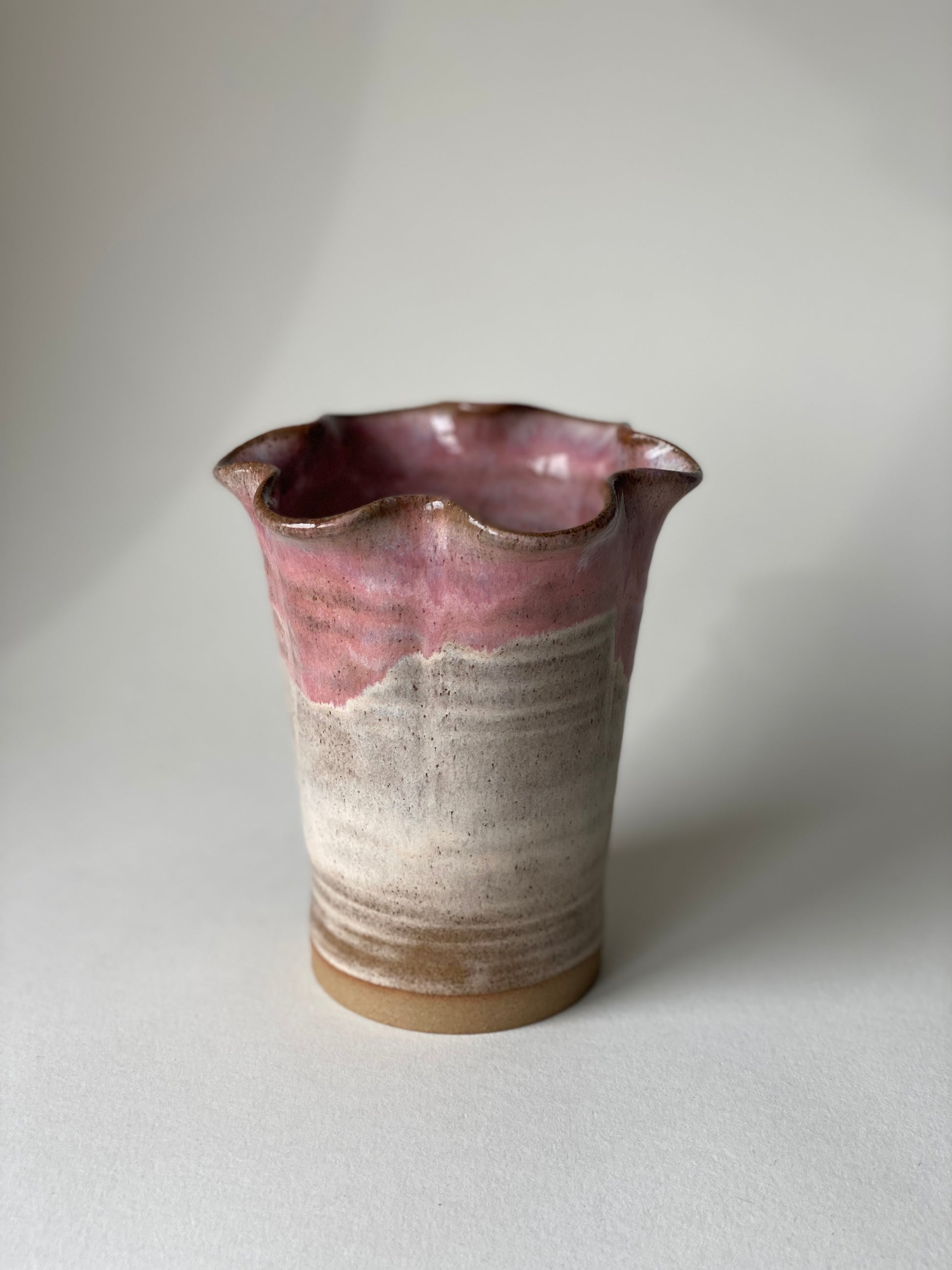 Hand-thrown stoneware frill flower vase in our blossom cream glaze combination.