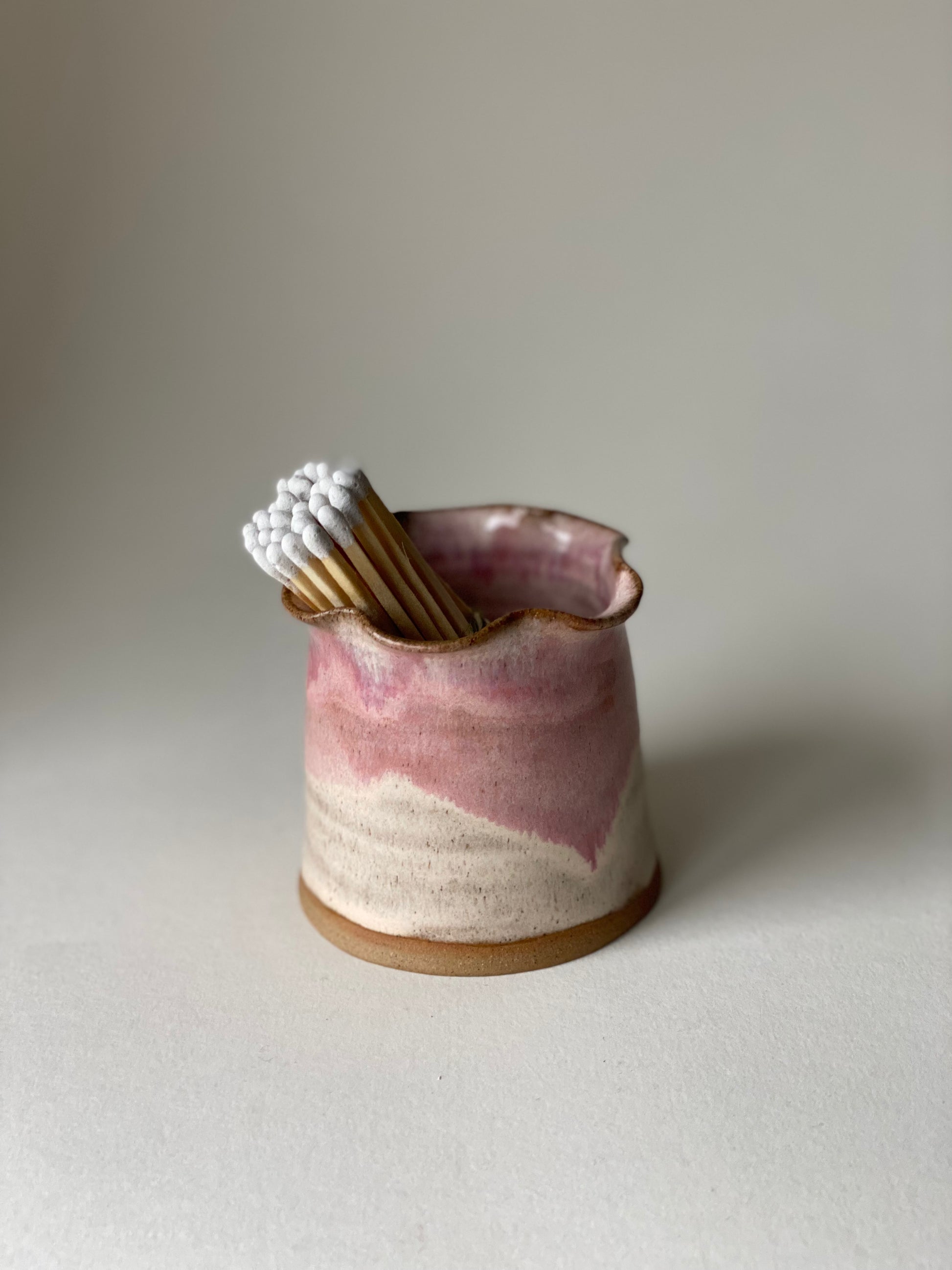 Each piece is handmade so the product you purchase can vary from the image shown, including the colour of the matches. Due to the nature of handmade ceramics, each piece has its own unique charm and irregularity.