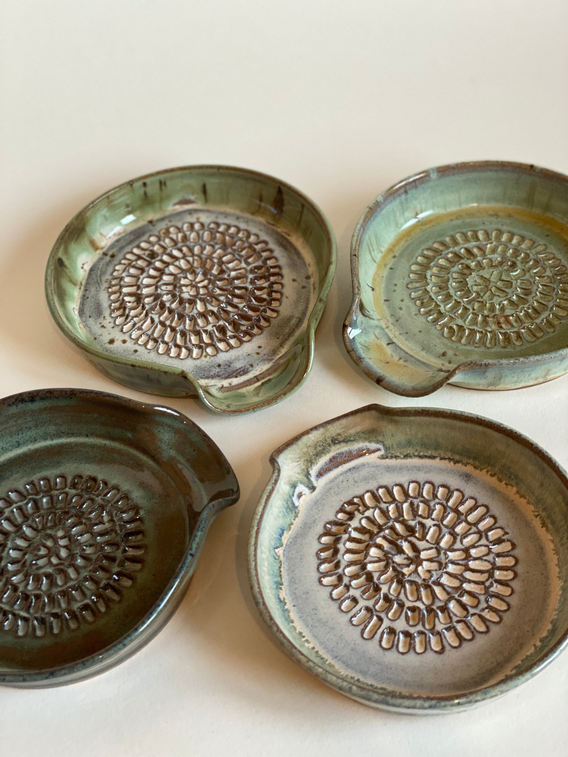 Hand-thrown stoneware Garlic Grater in our meadow speckle glaze combination. This also doubles up as a spoon rest.