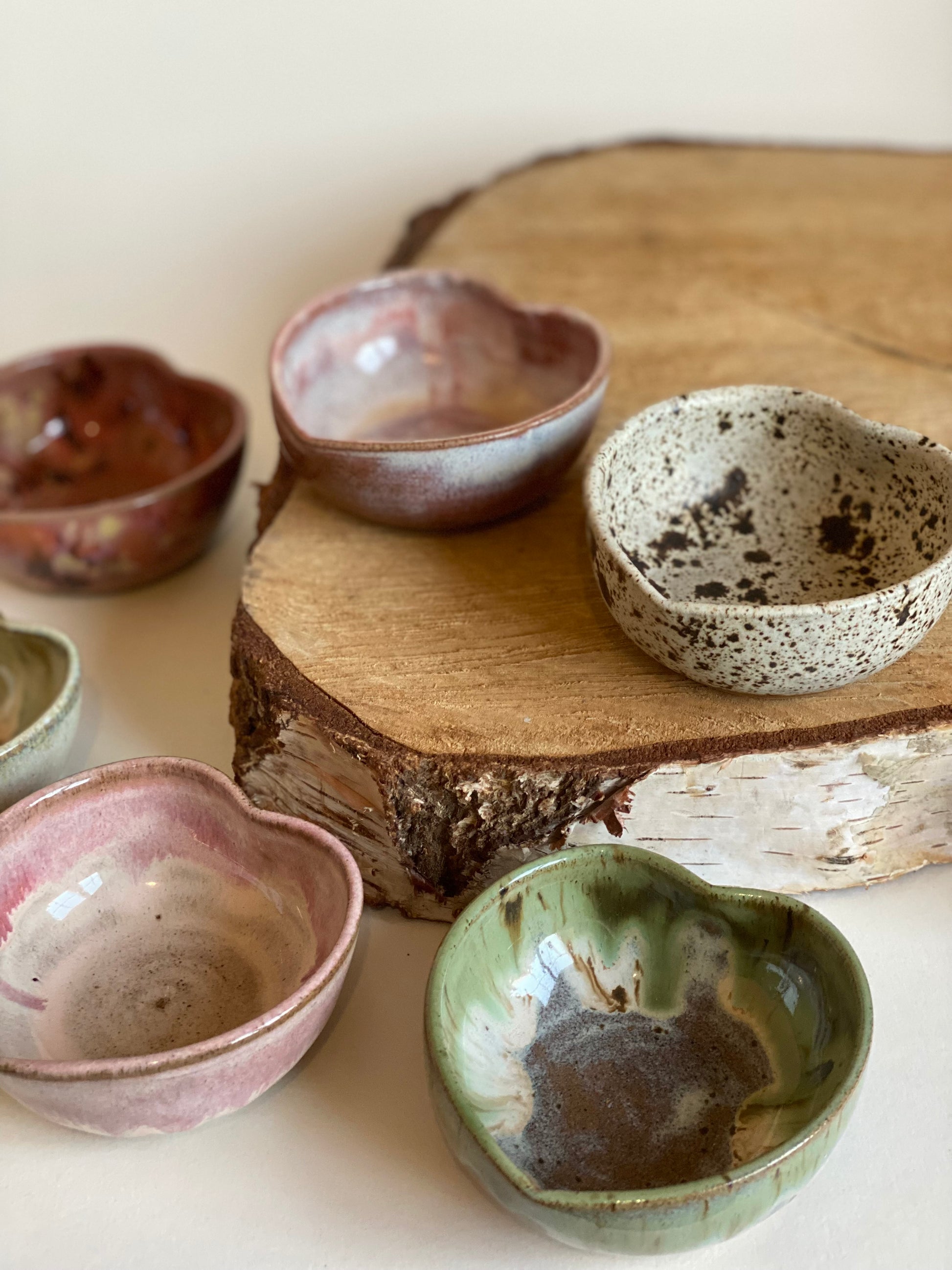 Hand-thrown stoneware heart trinket in our moss & sand glaze combination.