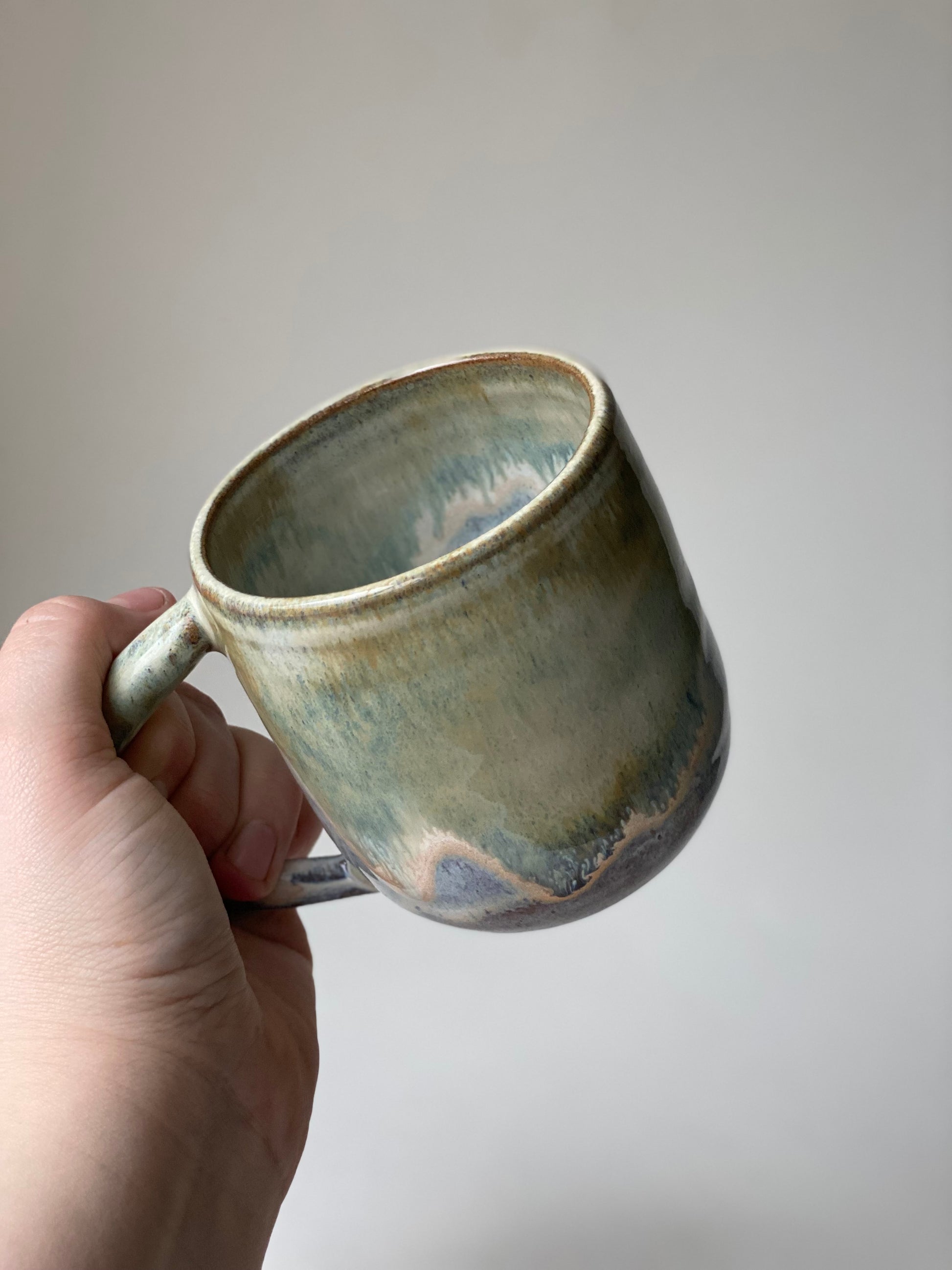 Hand-thrown stoneware mug decorated in our Eucalyptus Cream glaze combination.