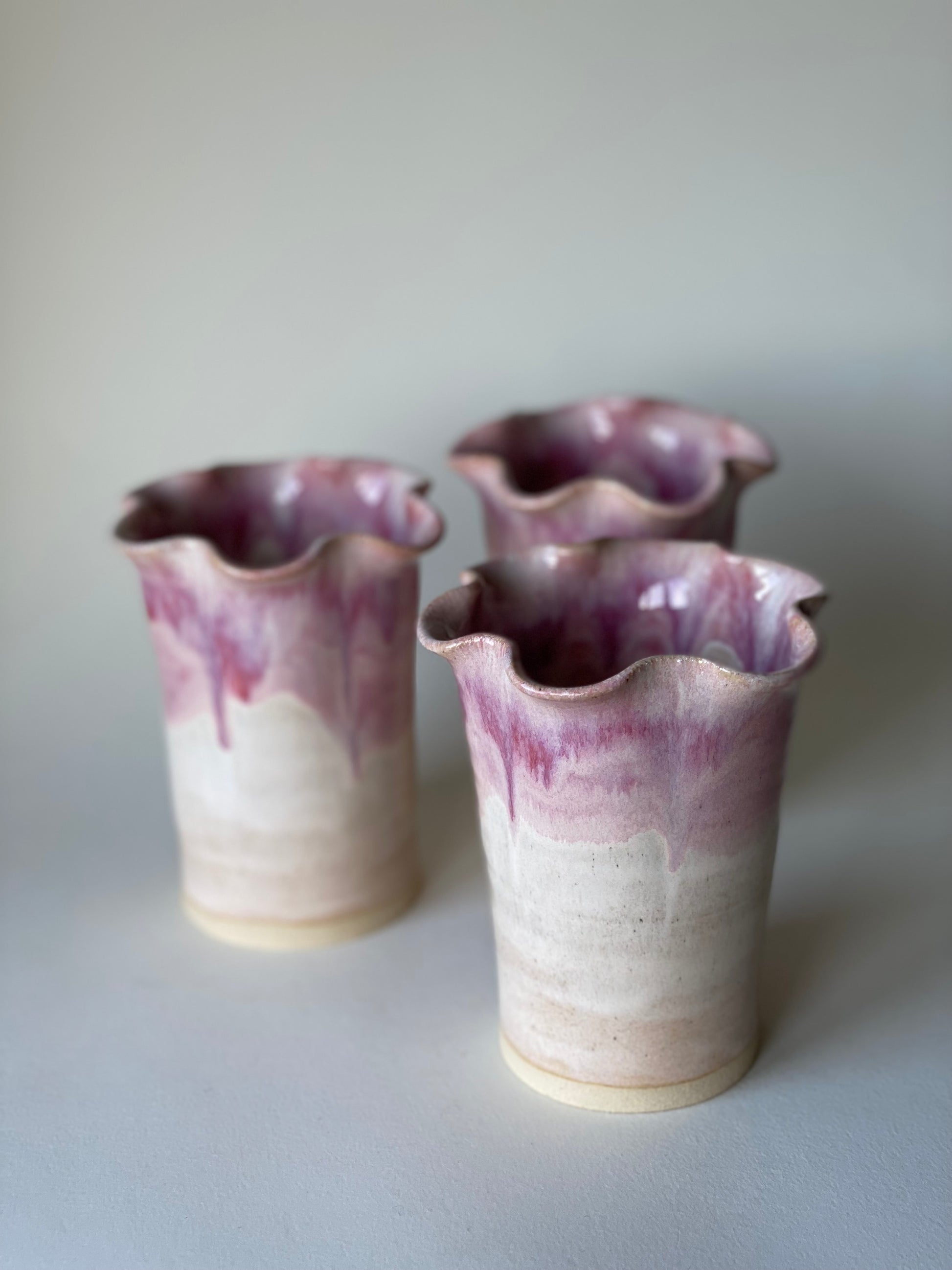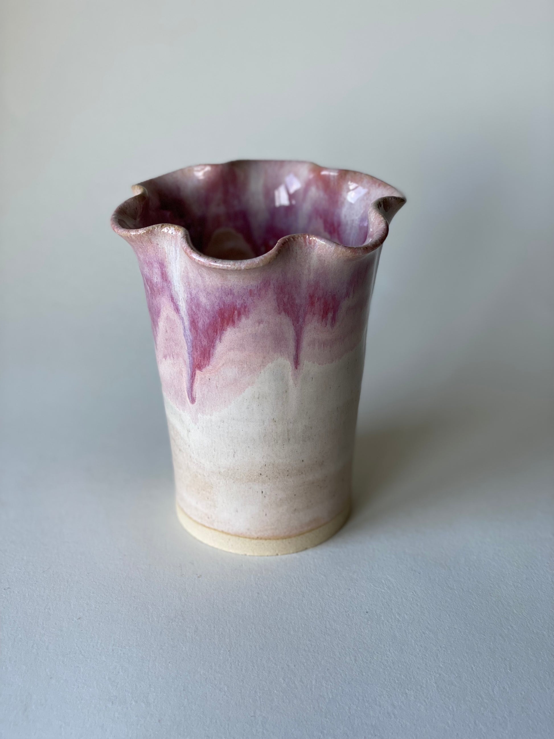 Hand-thrown (white) stoneware frill flower vase in our blossom cream glaze combination.